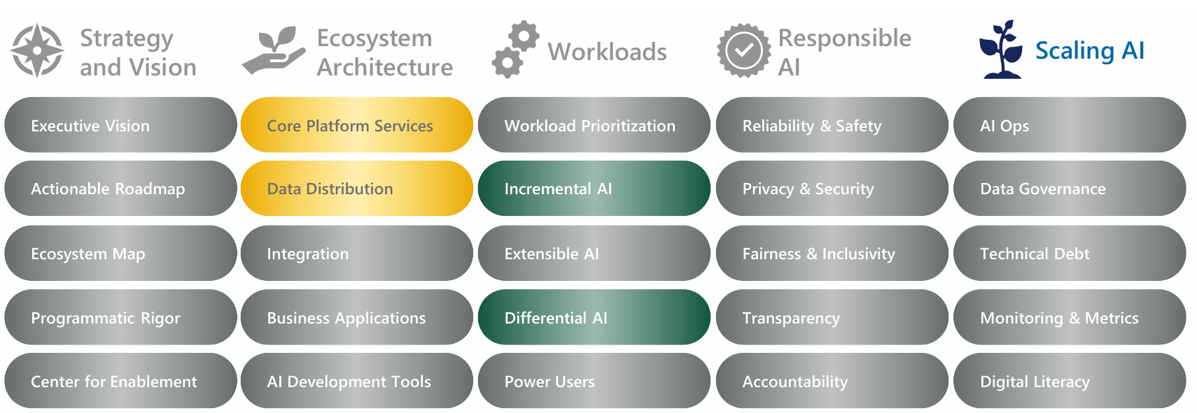 Figure 4: Core Platform Services (formerly “Data Readiness”), Data Distribution, Incremental AI, Differential AI, and Scaling AI have been revised and reworked from this white paper’s first to second edition.