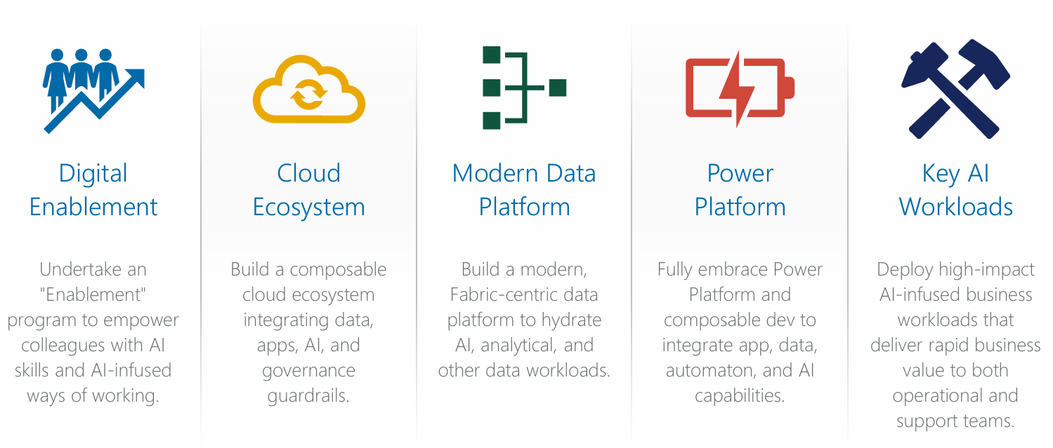 Figure 6: These five top-line priorities are representative samples similar to those that we see many organizations priorities as part of their early AI strategy.