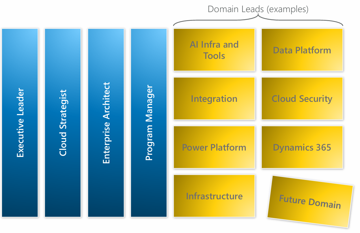 Each domain is represented by one cloud solution architect or technical leader, regardless of the number of projects or work streams in the domain;
