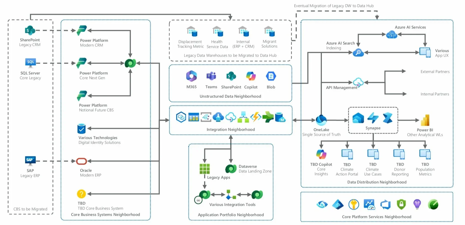 The ecosystem map shows how data will flow from the organizations’ core business systems (including some yet to be identified, which is just fine) and application portfolio such that it hydrates various data distribution points, including but not limited to AI workloads;